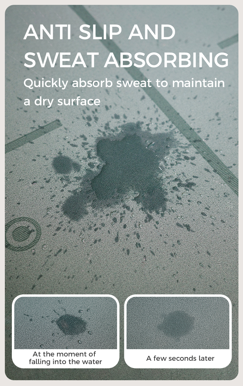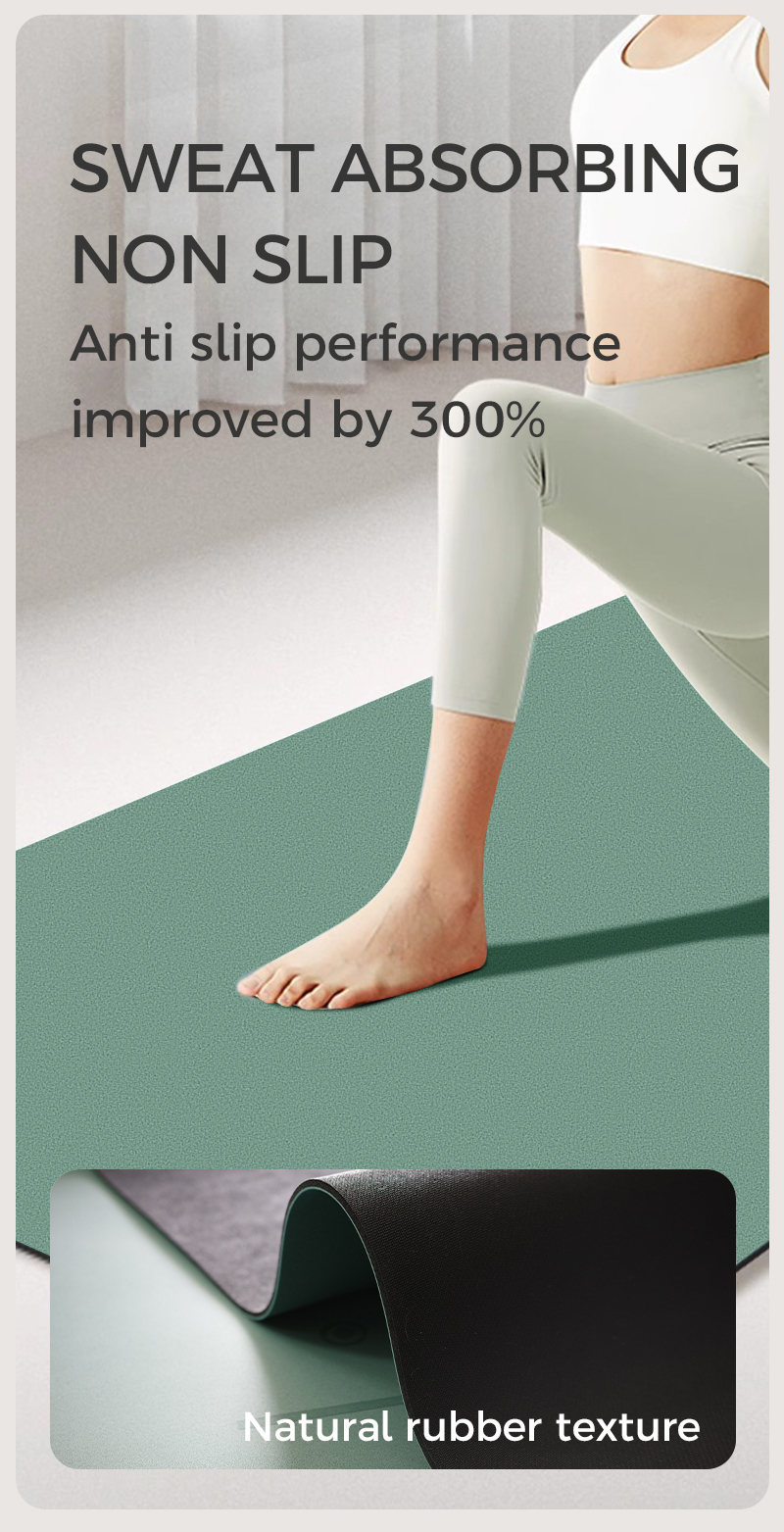 PU surface absorbs moisture and prevents slipping during hot yoga.